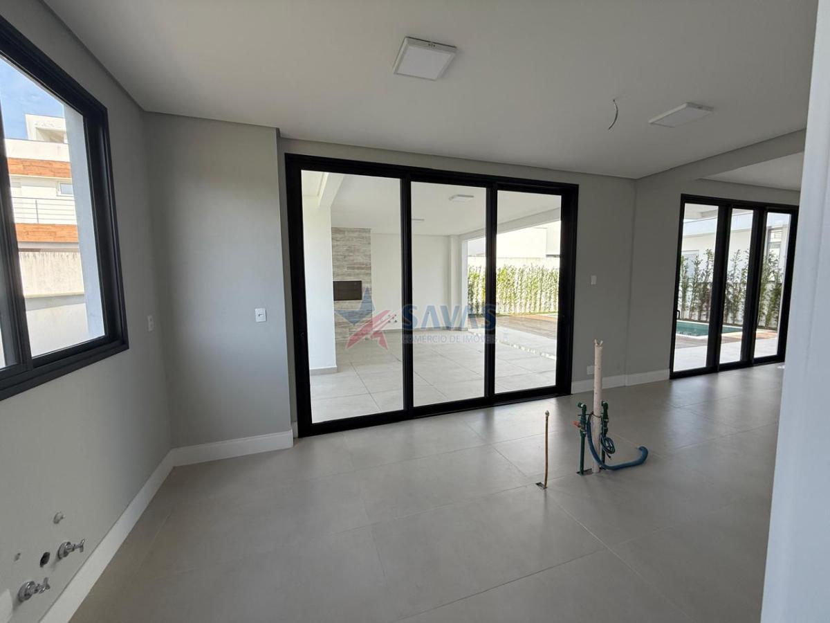 Sensacional casa 0 KM em condomínio fechado de alto nível, construída em terreno de 400 m2, muito bem planejada e distribuída em 2 pavimentos, 3 amplas suítes, todas com sacada, (sendo uma delas super master com amplo closet e espaçoso banheiro), sala de jantar, ampla sala de estar bem definida em 2 ambientes, sala íntima no mezanino, aconchegante ambiente de churrasco gourmet, integrado a piscina com deck (com espera pra aquecimento), jardim, lavabo, louceiro/despensa, ampla copa cozinha americana com espera para ilha, integrada a piscina, área de serviço, escritório, banheiro auxiliar, garagem para 4 carros (2 cobertas).