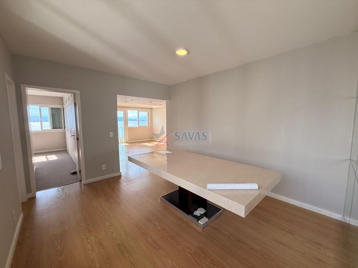 Confortável apartamento de 04 dormitórios (transformado para 3 com sala íntima, de fácil reversão ao original), sala de jantar, sala de estar com sacada panorâmica para o mar, lavabo, ampla copa cozinha, boa área de serviço, dependência de empregada, banheiro auxiliar, 2 garagem privativas livres.