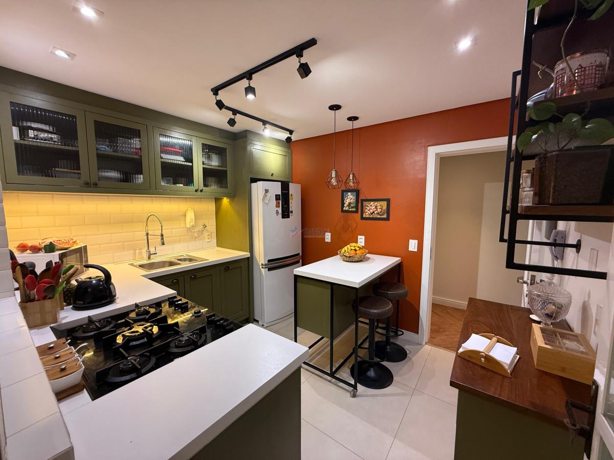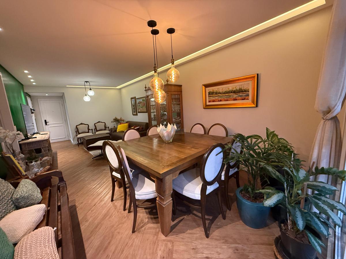 Amplo apartamento de 03 dormitórios (suíte com bom closet e sacada), espaçosa sala em ambientes bem confortáveis com sacadão e ponto de gás para churrasqueira, banheiro social, ótima cozinha montada com marcenaria top, boa área de serviço, dependência de empregada (revertida para a área íntima, podendo ser um 4º dormitório/escritório/etc), de fácil reversão ao original, banheiro auxiliar, 02 garagens, hobby box.