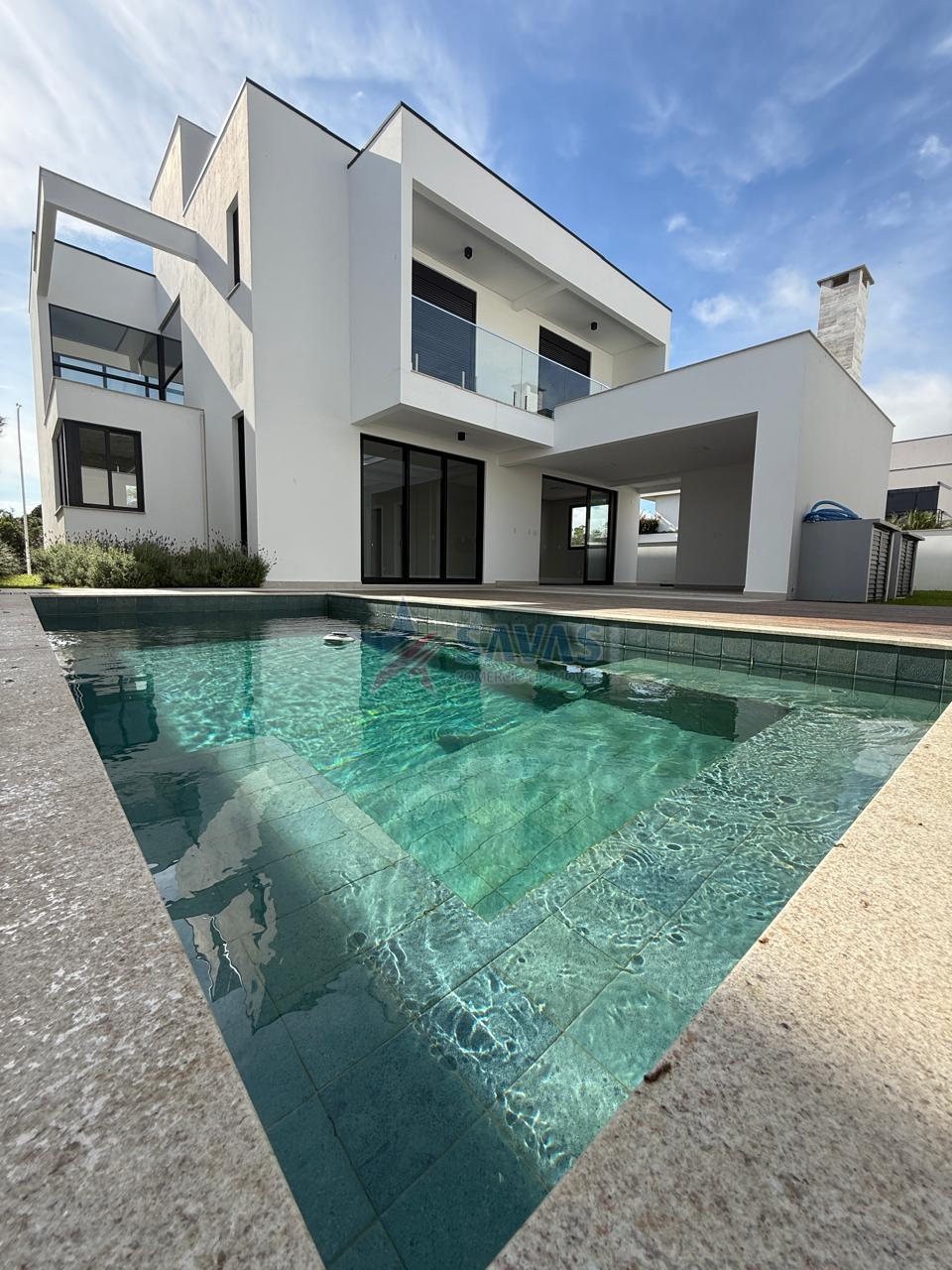 Sensacional casa 0 KM em condomínio fechado de alto nível, construída em terreno de 400 m2, muito bem planejada e distribuída em 2 pavimentos, 3 amplas suítes, todas com sacada, (sendo uma delas super master com amplo closet e espaçoso banheiro), sala de jantar, ampla sala de estar bem definida em 2 ambientes, sala íntima no mezanino, aconchegante ambiente de churrasco gourmet, integrado a piscina com deck (com espera pra aquecimento), jardim, lavabo, louceiro/despensa, ampla copa cozinha americana com espera para ilha, integrada a piscina, área de serviço, escritório, banheiro auxiliar, garagem para 4 carros (2 cobertas).