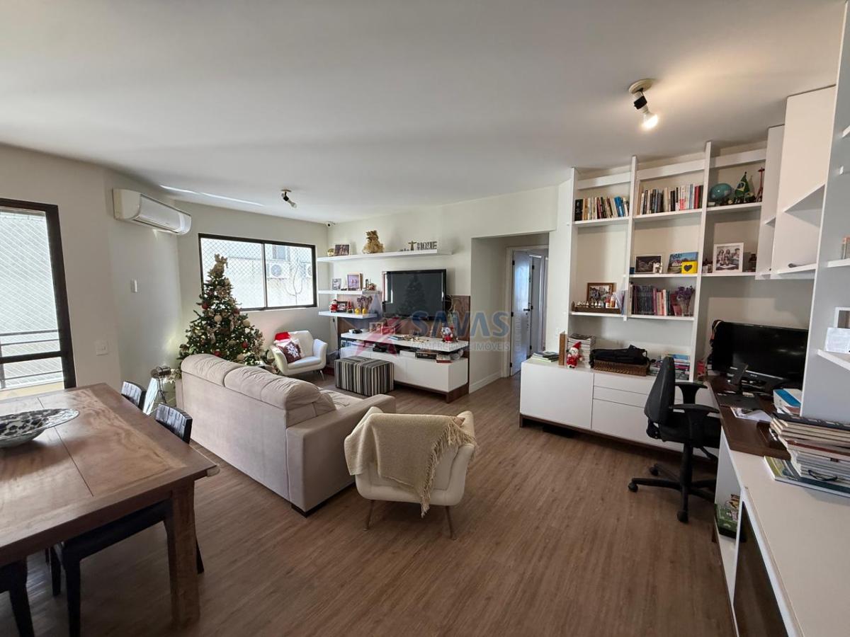 Confortável apartamento de 3 dormitórios (ampla suíte com sacada e vista para o mar), espaçosa sala em ambientes definidos com sacada, banheiro social, lavabo, ótima cozinha com mesa de apoio, boa área de serviço, dependência de empregada, banheiro auxiliar, garagem privativa livre.