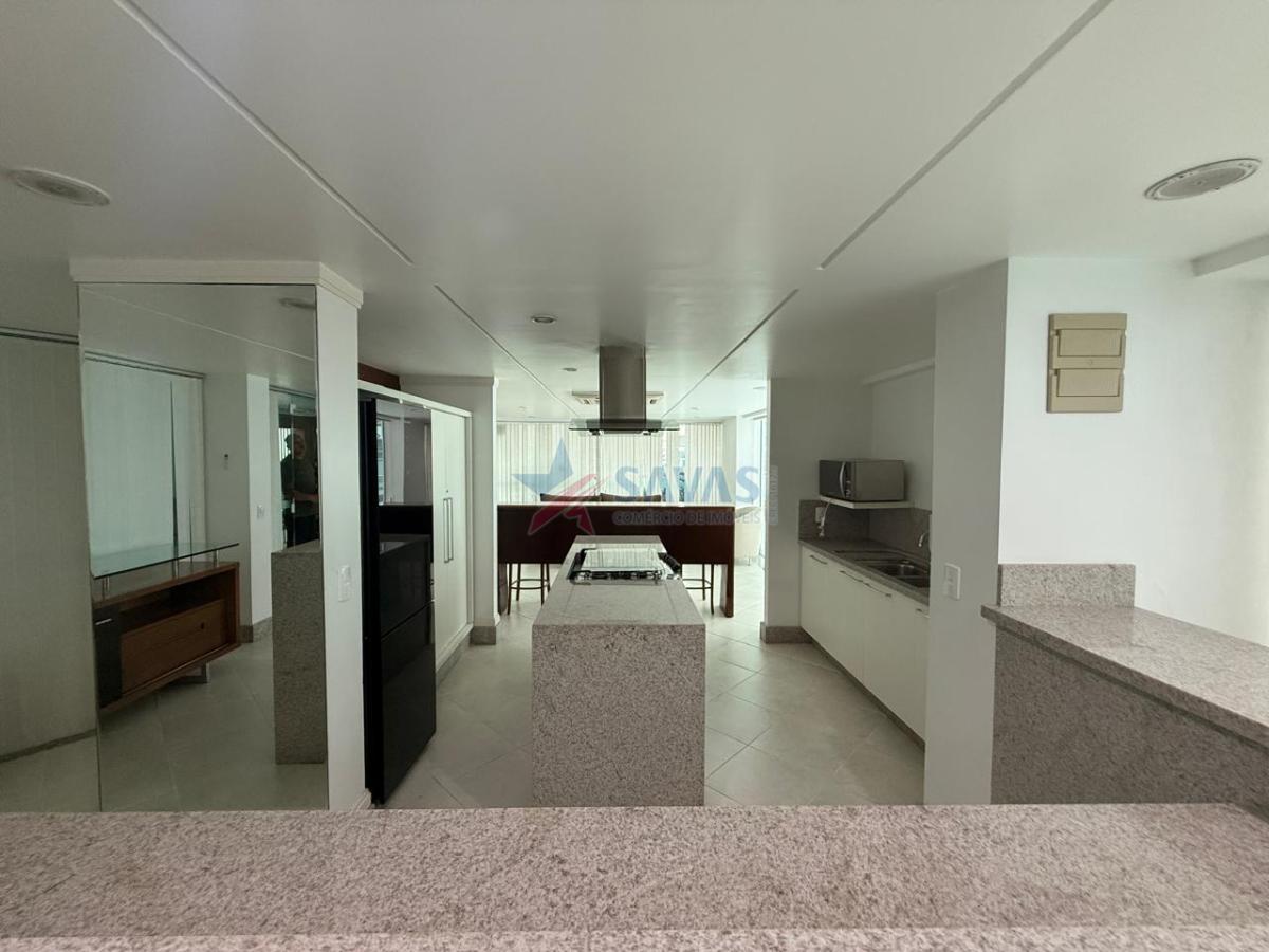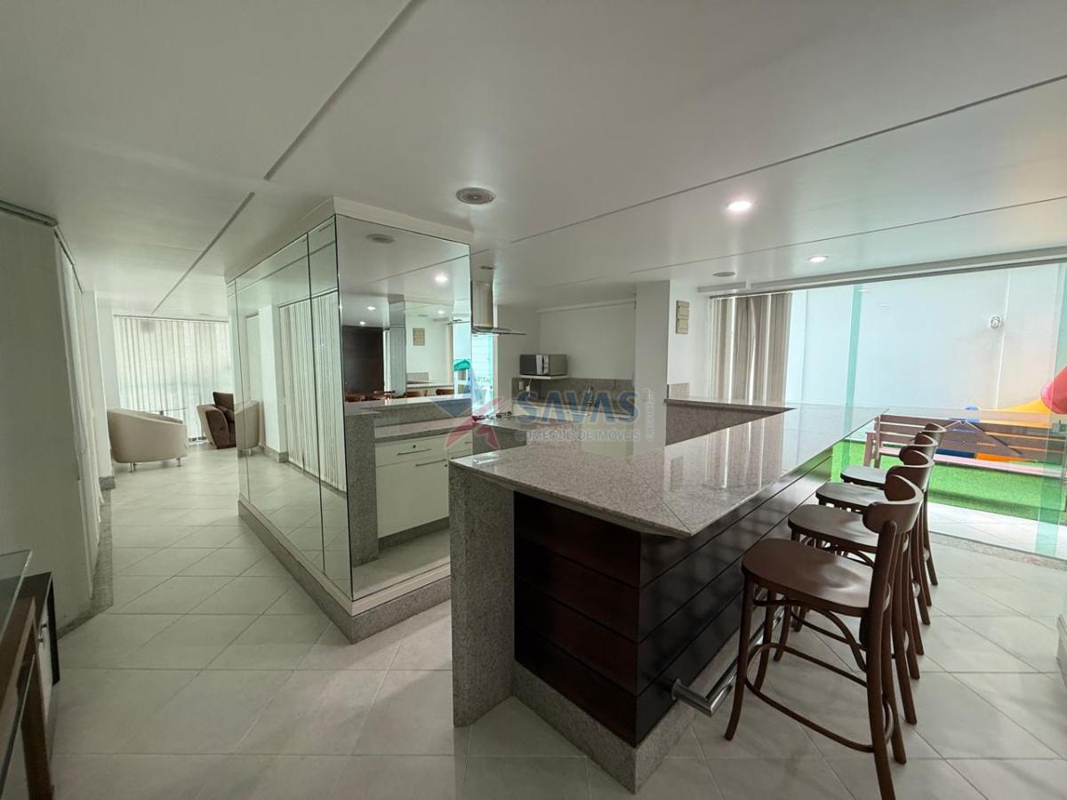 Confortável apartamento com 03 suítes (sendo 01 master com amplo terraço), sala em 3 ambientes bem espaçosos e definidos, sacada com churrasqueira a carvão, lavabo, ampla copa/cozinha montada, boa área de serviço, dependência de empregada (que foi integrada a sala, de fácil reversão), banheiro auxiliar, 02 vagas de garagem.