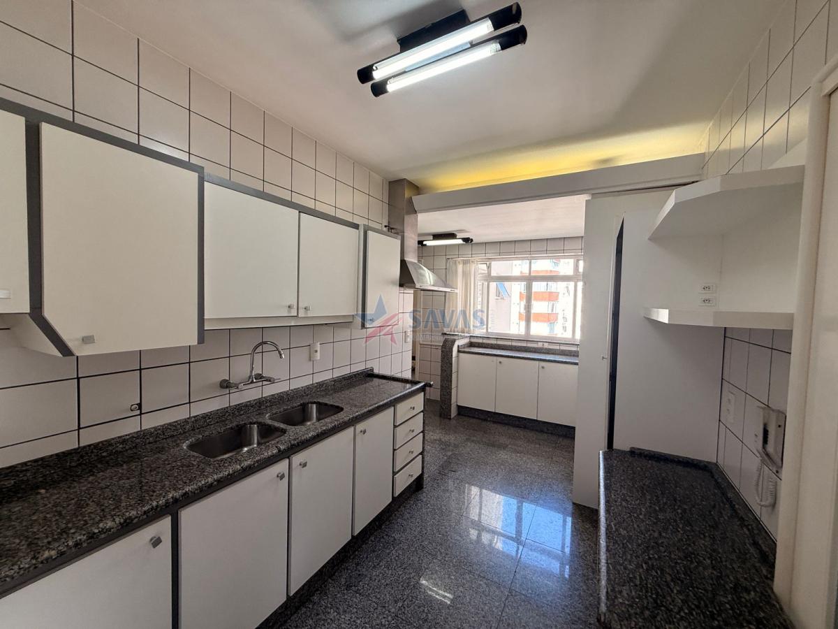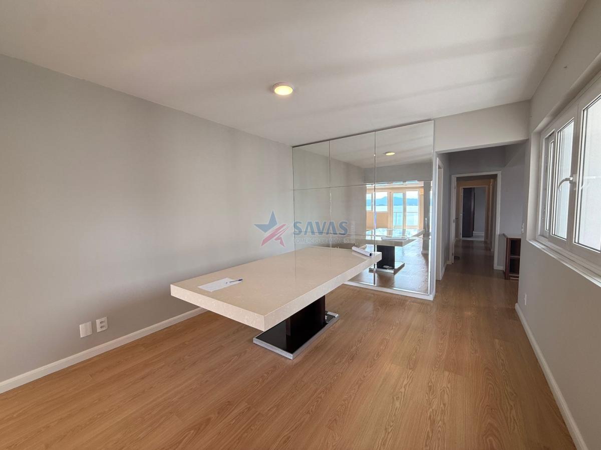 Confortável apartamento de 04 dormitórios (transformado para 3 com sala íntima, de fácil reversão ao original), sala de jantar, sala de estar com sacada panorâmica para o mar, lavabo, ampla copa cozinha, boa área de serviço, dependência de empregada, banheiro auxiliar, 2 garagem privativas livres.